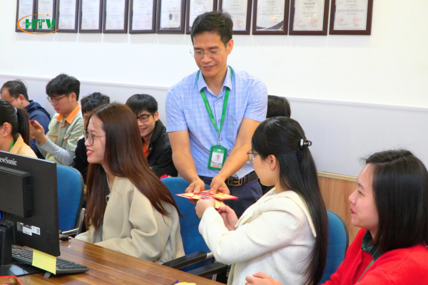 Phó tổng giám đốc trao gửi lì xì tới CBNV
