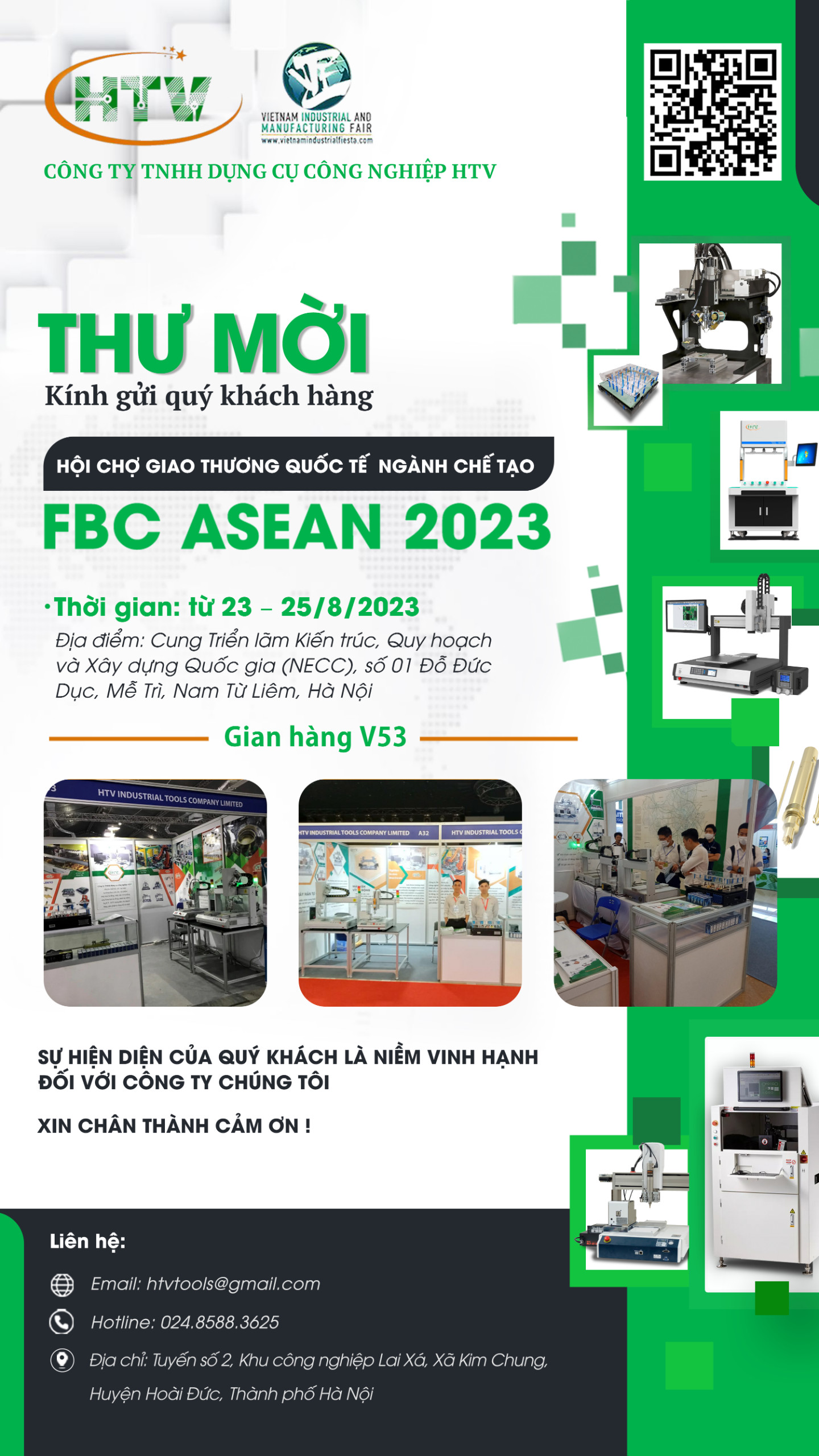 Kính mong Quý Khách Hàng – Quý Đối Tác tới tham quan triển lãm và ghé thăm gian hàng V53 HTV. Quý Vị có bất kì thắc mắc xin vui lòng gửi email: htvtools@gmail.com để Chúng Tôi có thể sắp xếp đón tiếp được chu đáo hơn.