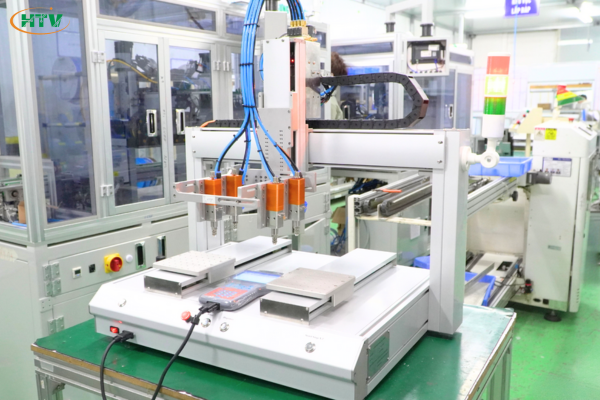 Bôi keo bo mạch: Quy trình bôi và đổ keo lên bo mạch điện tử được thực hiện nhanh chóng và hiệu quả, tối ưu hóa quá trình lắp ráp.
